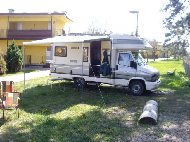 na chwilę przycupnęliśmy obserwując bawiące się dzieci i nawiązaliśmy znajomość z innym użytkownikiem forum internetowego karawaning.pl. wymieniliśmy parę uwag, a dzień chylił się już ku wieczorowi- kolacja i spać ( dla nas jeszcze kolejny odcinek „Doktora House'a”). moje kobiety skorzystały z pryszniców- ich stan całkiem dobry, w cenie opłaty pobytowej i bez limitów. i nie ma tłoku. im ciemniej na dworze kemping stawał się coraz cichszy...