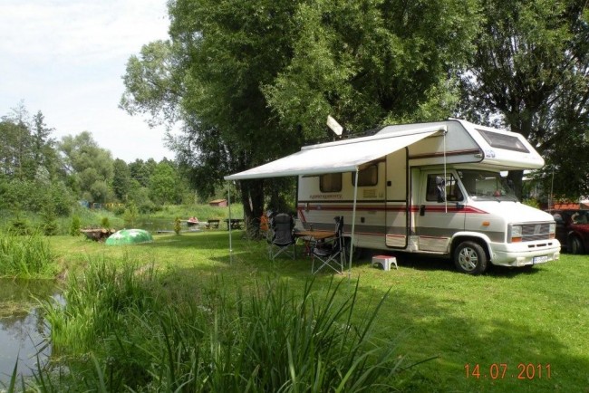 Pole namiotowe.Za kamperka+2os.+prąd=20zł.Tyle teraz płaciłem.Ładne pole nad rzeczką,blisko do jeziora.
