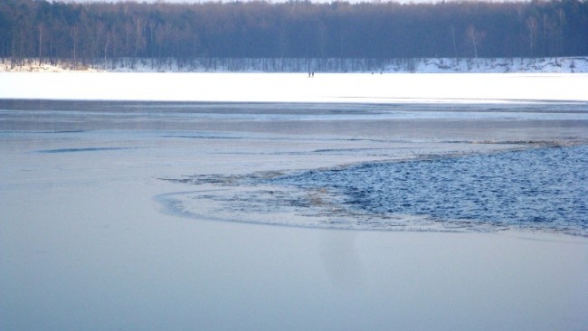 Zaskoczyła nas powierznia Zalewu... w połowie wiosenna (pływajace kaczki, łabędzie), w połowie zimowa a na niej wędkarze łowiący pod lodem.