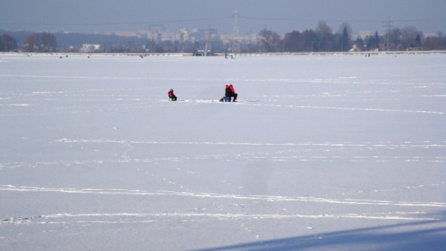 2011-01-29 so 010.JPG Wędkarze w zbliżeniu. A pod przeciwległym brzegiem te kilkanaście małych punkcików... to też wędkarze (byliśmy na tamtym brzegu też). |