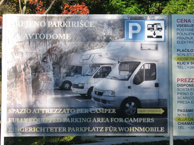 W Postojnej jest fajny camperpark (specjalny parking dla camperow ok 200 m od wejscia do jaskini), reklamowany tez w ulotkach o Postojnej.